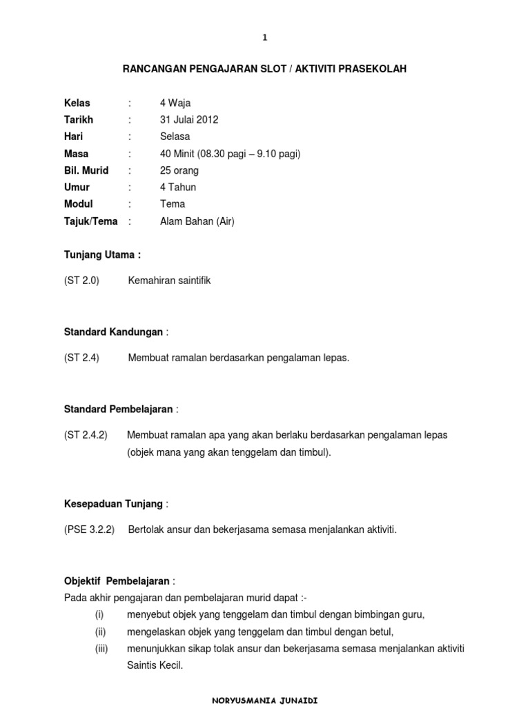 Contoh rancangan pengajaran harian sains prasekolah. Maybe you would like to learn more about one of these? Check spelling or type a new query. We did not find results for: